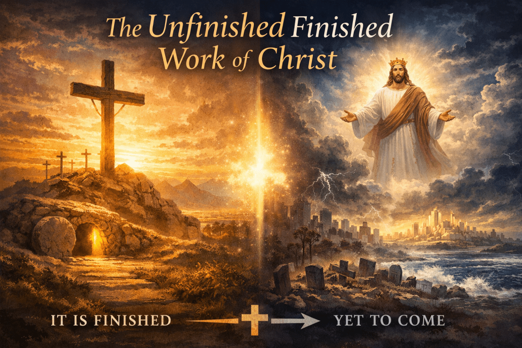 When Jesus said, “It is finished.”, he surely meant it. Christ’s work is finished, and yet, it is not yet finished completely. It is finished in its foundation, but it is unfinished in its consummation. We are waiting for the full glory of Christ and his work to be finally revealed on earth. And even in acknowledging the unfinished aspects of Christ work, we must affirm that the work of the cross is not undone; it is unfolding. The resurrection is not isolated; it is expanding. And one day, we will all be raised to meet him in the air, and from that point on, we will always be with the Lord. This is our hope, namely that the Christ who finished his work on the cross is coming again to bring it to final completion. Even so, come quickly, Lord Jesus! Maranatha!