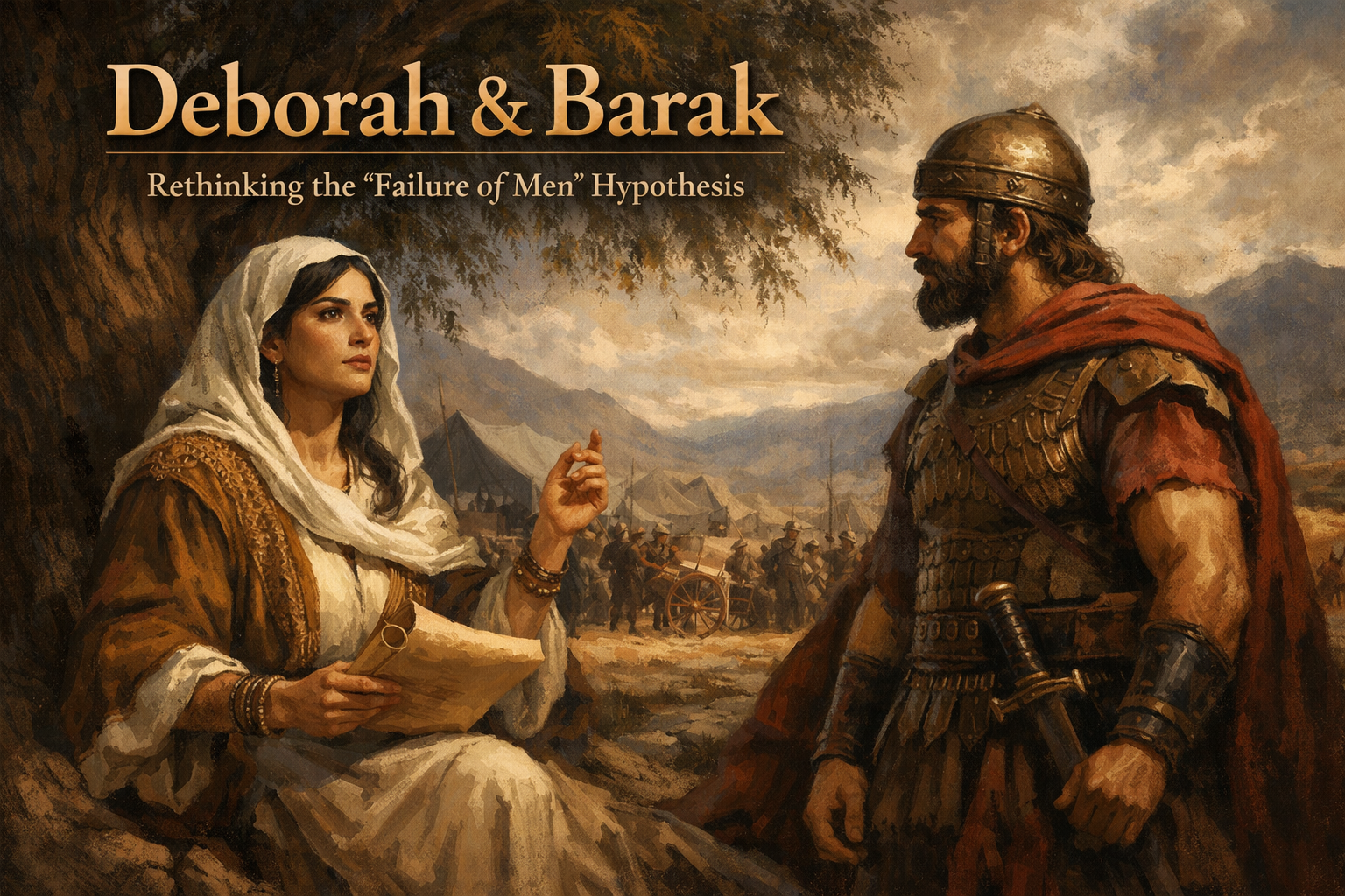 Textually, the “failure of men” hypothesis is built on Barak’s apparent hesitation. In Judges 4.8, when Deborah instructs Barak to gather the tribes in preparation for battle, he responds, “If you will go with me, I will go. But if you will not go with me, I will not go.” Deborah agrees to accompany him, but she also declares that the honor of the victory will not go to Barak. From this, the argument is often made that Barak’s hesitation reveals a lack of courage or leadership, and that Deborah steps in to fill the resulting gap. The conclusion, then, is that God raises up women to lead when men fail. While it is certainly true that Barak hesitates and that Deborah plays a central leadership role, this conclusion goes beyond what the text itself actually supports. It does not arise from the narrative so much as it is imposed upon it. The issue is not whether Deborah leads—the text clearly affirms that she does—but whether her leadership is presented as a response to male absence or failure.